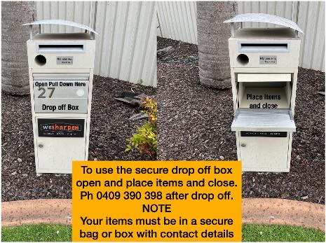 DROP OFF BOX for secure drop off only 7 days 24hrs